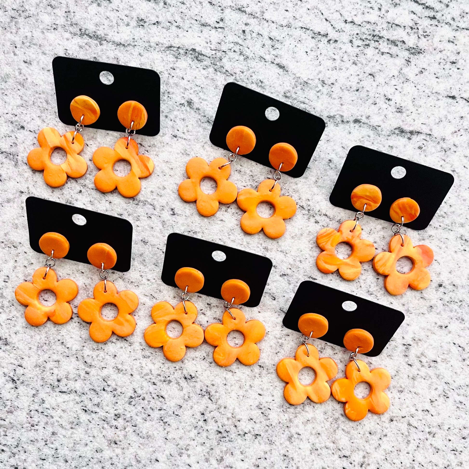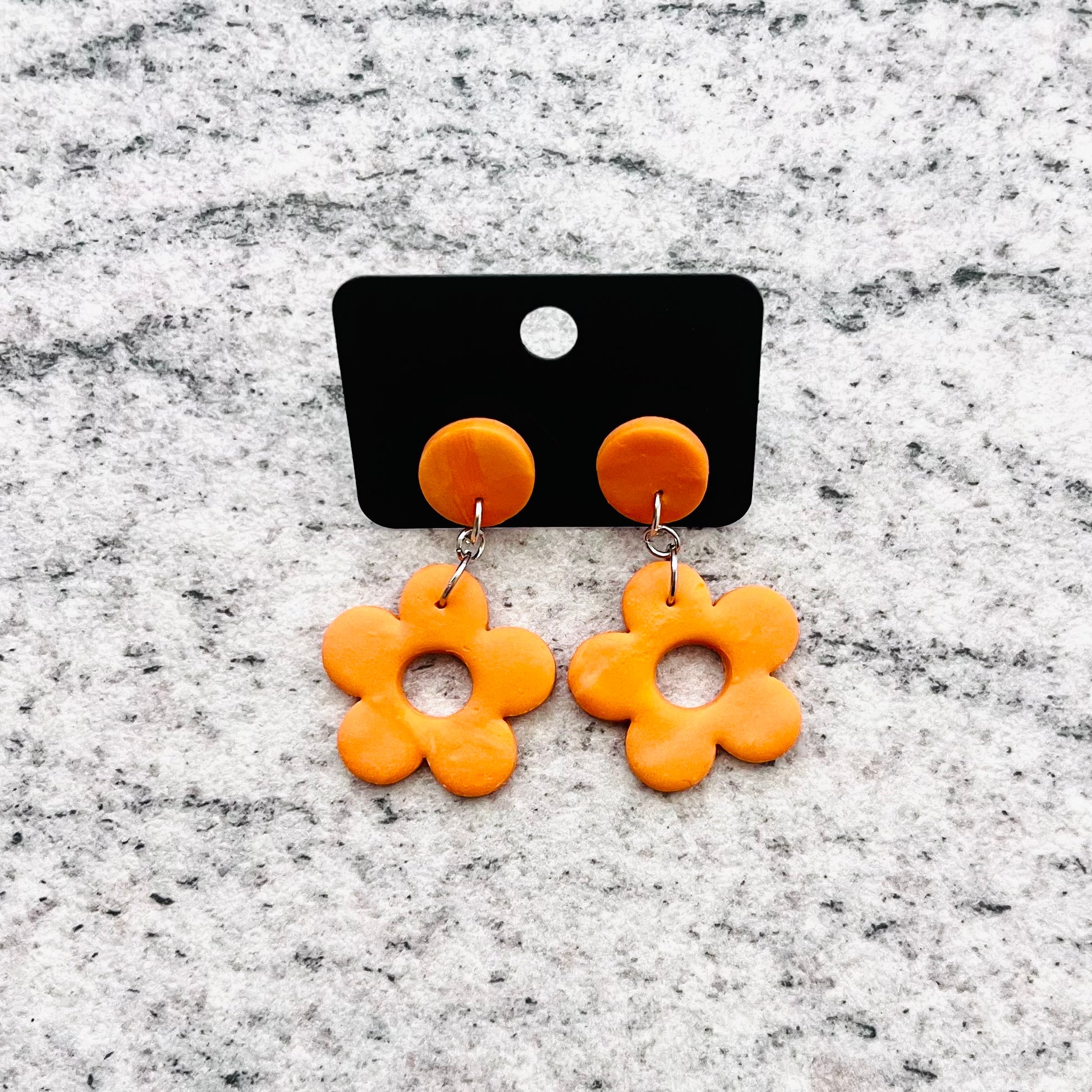 Ročno narejeni viseči uhančki v obliki cvetlice. Vsak kos je unikaten, z drobnimi razlikami, ki poudarjajo ročno izdelavo in posebnost vsakega para. Lahki in udobni za nošenje, primerni za vsak dan ali posebne priložnosti.